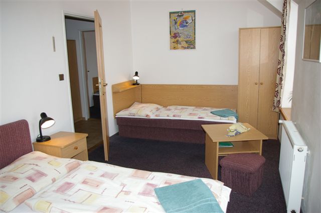 V našem penzionu je Vám k dispozici celkem 55 lůžek. Pokoje se nacházejí ve druhém a třetím nadpodlaží a jsou jedno, dvou, tří a čtyřlůžkové.